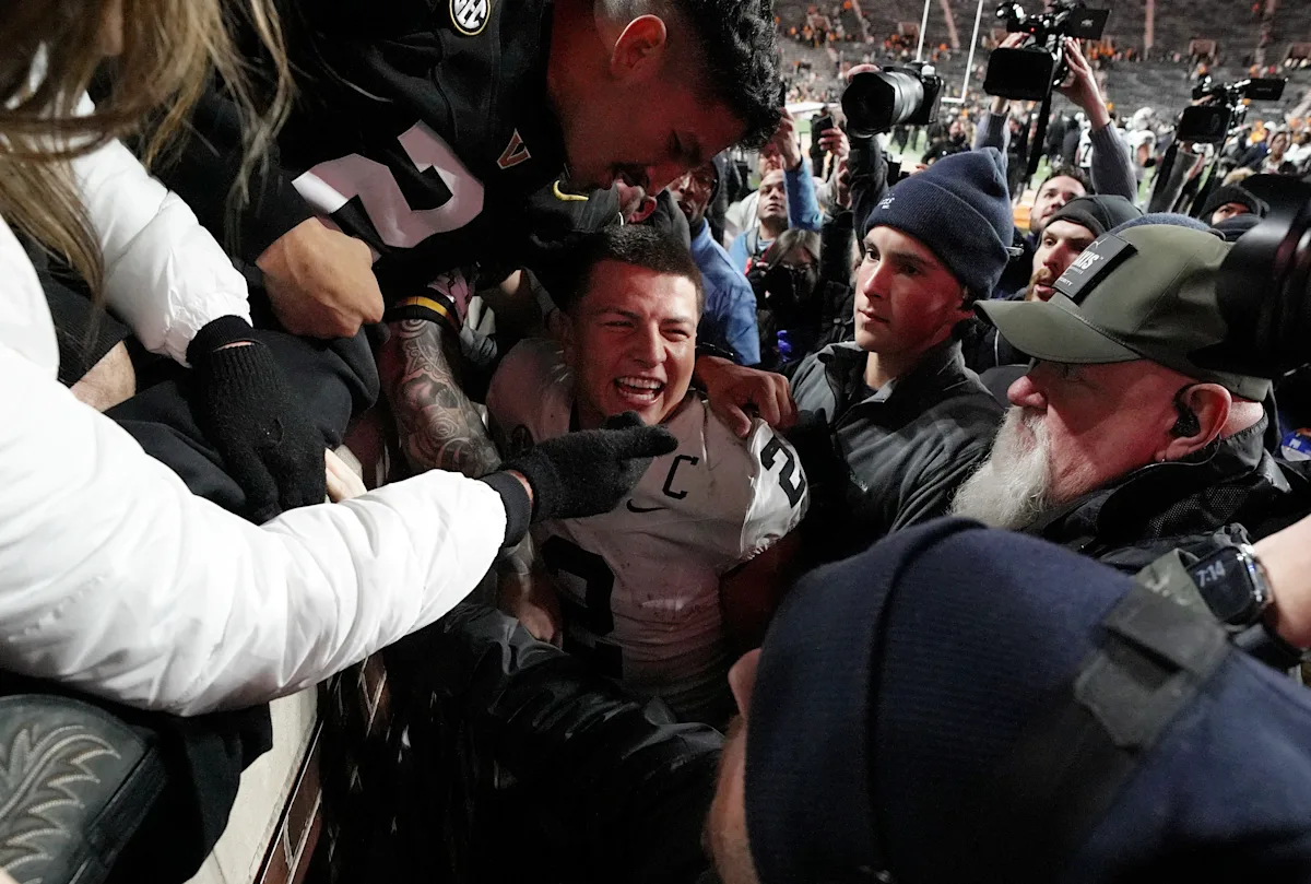Diego Pavia sabe tudo sobre a emoção da vitória com o futebol Vanderbilt. Mas o quarterback, que está se esforçando para se tornar finalista do Troféu Heisman, também teve o que pode vir com isso em 29 de novembro, quando liderou os Commodores na vitória por 45-24 contra o Tennessee em Knoxville. diga como.Em 2 de dezembro, ele limpou o ar durante uma aparição no talk show “Good Sports” da Amazon com Kevin Hart e Kenan Thompson depois que Hart percebeu que Pavia estava com um olho roxo. Digamos apenas que um oficial acrescentou injúria ao insulto. “Esta é uma história ruim”, disse Pavia. “Eu fiz uma interceptação no sábado. Vou fazer um bloqueio. Sou bloqueado nas costas. O árbitro jogou a bandeira e ela passou pelo meu capacete e me acertou no nariz. Acho que está quebrado.” Pavia perguntou. “Não, não”, disse Hart. Paul Skrbina é um repórter esportivo que cobre Predators, Titans, Nashville SC, faculdades locais e esportes locais para o The Tennessean. Entre em contato com ele em pskrbina@tennessean.com e na plataforma X (anteriormente conhecida como Twitter) @paulskrbina.