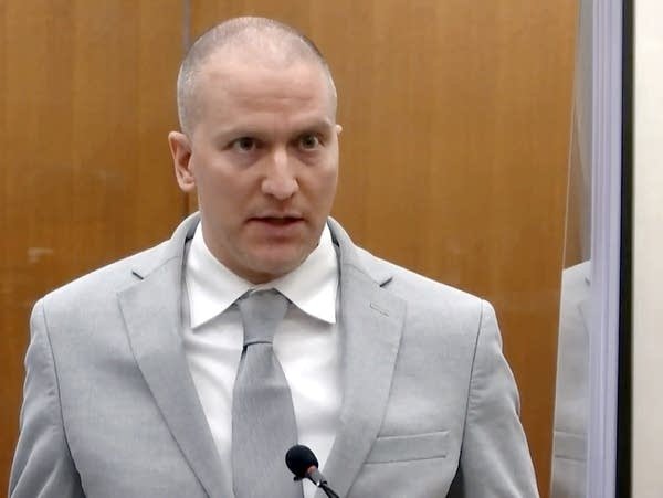 In this image taken from a video, former Minneapolis police officer Derek Chauvin addresses the court at the Hennepin County Courthouse on June 25, 2021, in Minneapolis. Chauvin is seeking to have his conviction overturned.