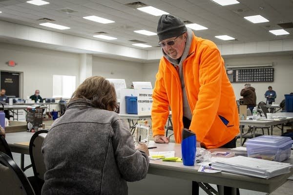 A member of the public brings water samples to a water screening clinic at the Knights of Columbus Event Center in Fairmont, Minn., on Dec. 4, 2025.